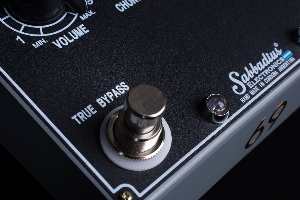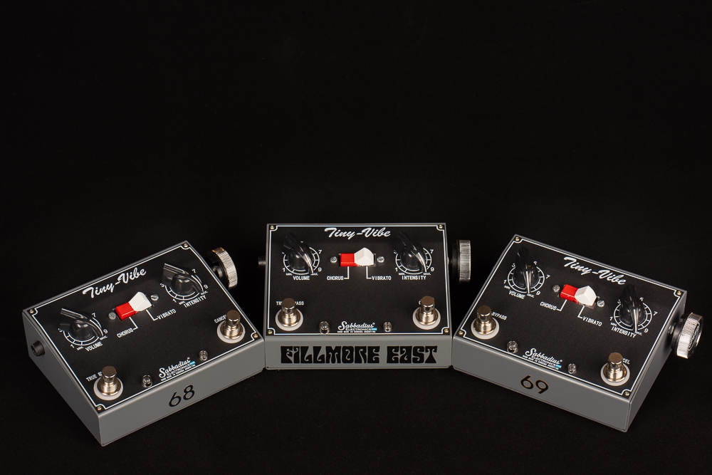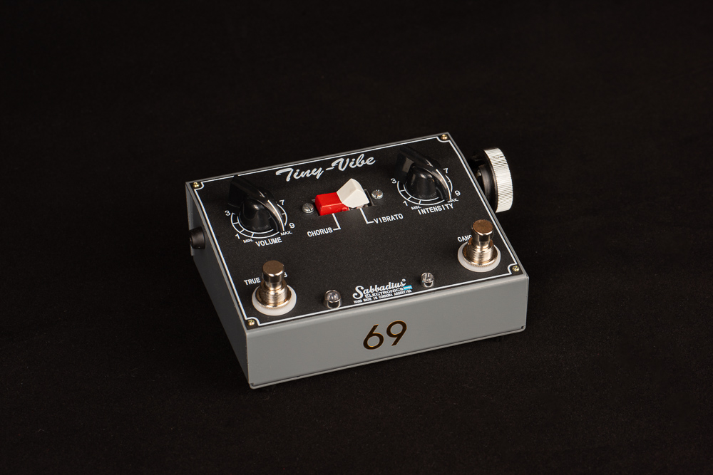 Se redujo el gabinete a diferencia del Funky-Vibe para ayudar a reducir el precio del Tiny-Vibe. El 68 Tiny-Vibe tiene los mismos componentes y especificaciones que el antiguo Honey Uni-Vibe de 1968 y la version 69 Tiny-Vibe tiene los mismos componentes y especificaciones que la version Shin-ei de 1969. Usamos fotocelulas customizadas (LDR / CDS) para darle al Sabbadius Tiny-Vibe el tipo de sonido original Uni-Vibe.